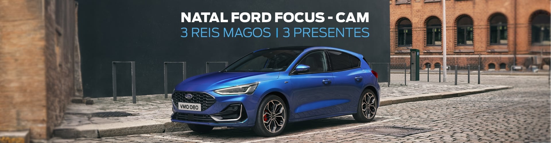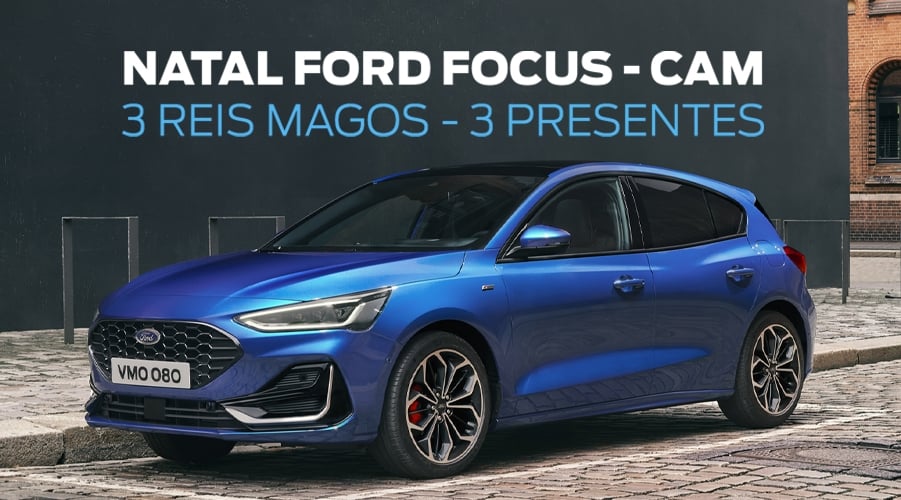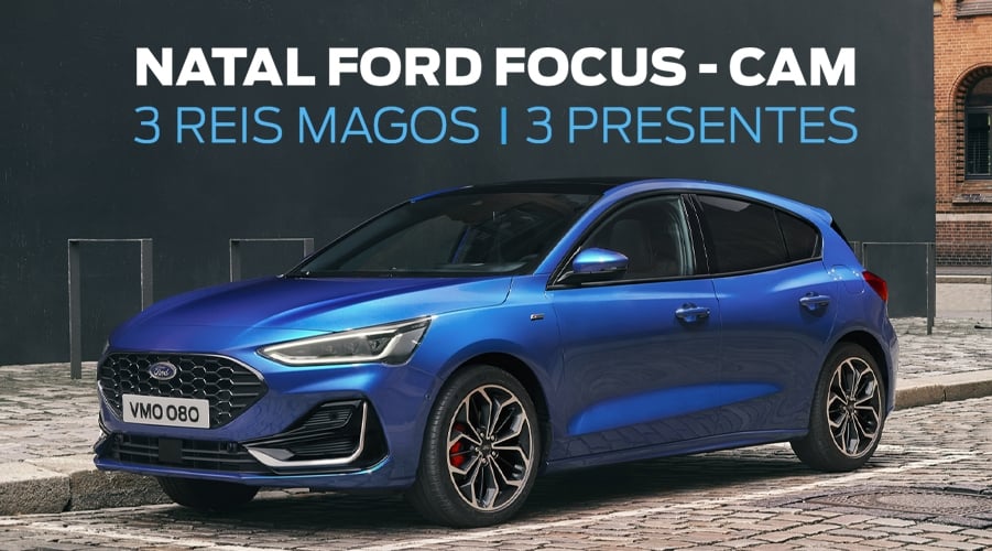 *Campanha válida em Condições Especiais de Aquisição. As 3 Ofertas anunciadas não são cumulativas com outras Campanhas em Vigor. Válido para o Modelo Ford Focus MHEV Stock, carro ou carrinha. Campanha válida para clientes particulares, com negócios fechados até 31 de dezembro de 2025. Inclui campanha de retoma. A Oferta do Desconto Total Direto inclui IVA. A Oferta de Oficina é válida apenas nas Oficinas CAM. A Oferta do Cartão Presente será entregue no momento da entrega do veículo. Imagem não contratual.